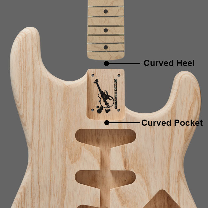 A SC neck fits a SC-shaped pocket because both the heel and the pocket are curved.
